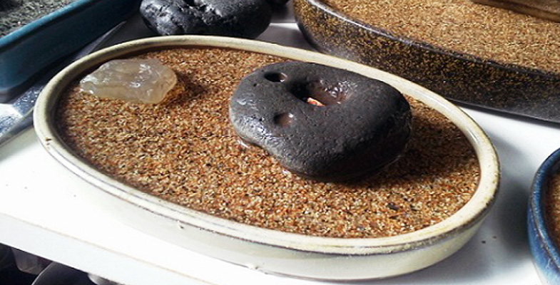 また小さな庭園をあしらった石に水を降りかけると、石の表情がさらに変化していくことにも感銘を受けました。