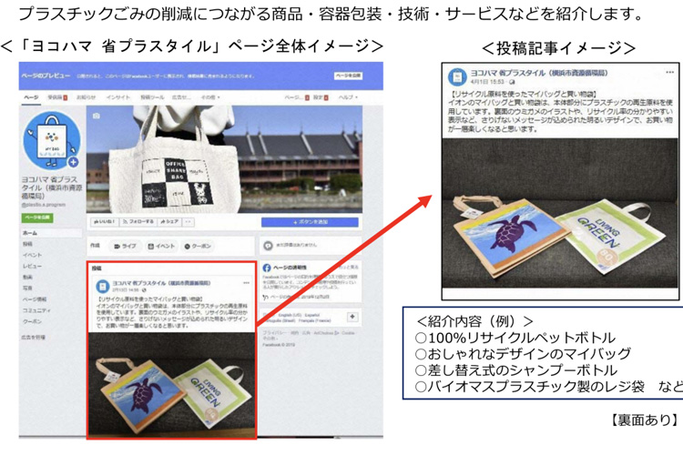 横浜市では、令和元年9月に策定された「よこはまプラスチック資源循環アクションプログラム」に基づきプラスチック対策を進めています。 今回、プラスチックごみ削減につながる取組の情報発信するFacebookページ「ヨコハマ省プラスタイル」が開設されました。市庁舎内のコンビニでもレジ袋の使用が無くなりましたが、事業者による様々な取り組みなども紹介されており、省プラスチックへの参考になると思います。