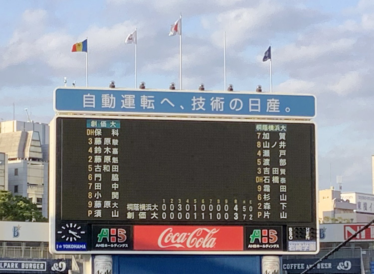 今日は第16回関東地区大学野球選手権大会の決勝戦が行われ、母校・創価大学は桐蔭横浜大学と対戦し、3-4で惜敗となりました。ゲームの流れをいかに掴むかが重要ですが、最後の公式戦に相応しいナイスゲームとなりました。