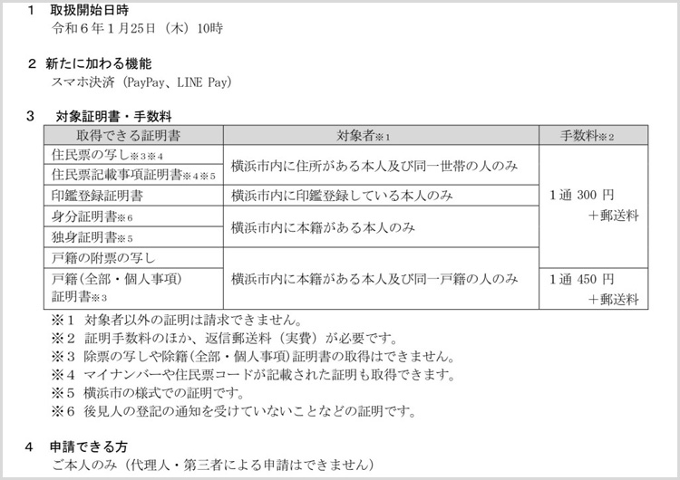 令和6年1月25日から、戸籍関係証明書のオンライン申請は「横浜市電子申請・届出システム」に移行します。この移行にともない、これまでのクレジットカード決済に加えて、新たに「スマホ決済」が利用できることになります。