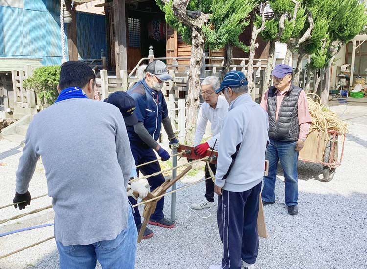 横浜市無形民族文化財である「蛇も蚊も祭り」は、来週の本番に向けて蛇の製作が行われました。