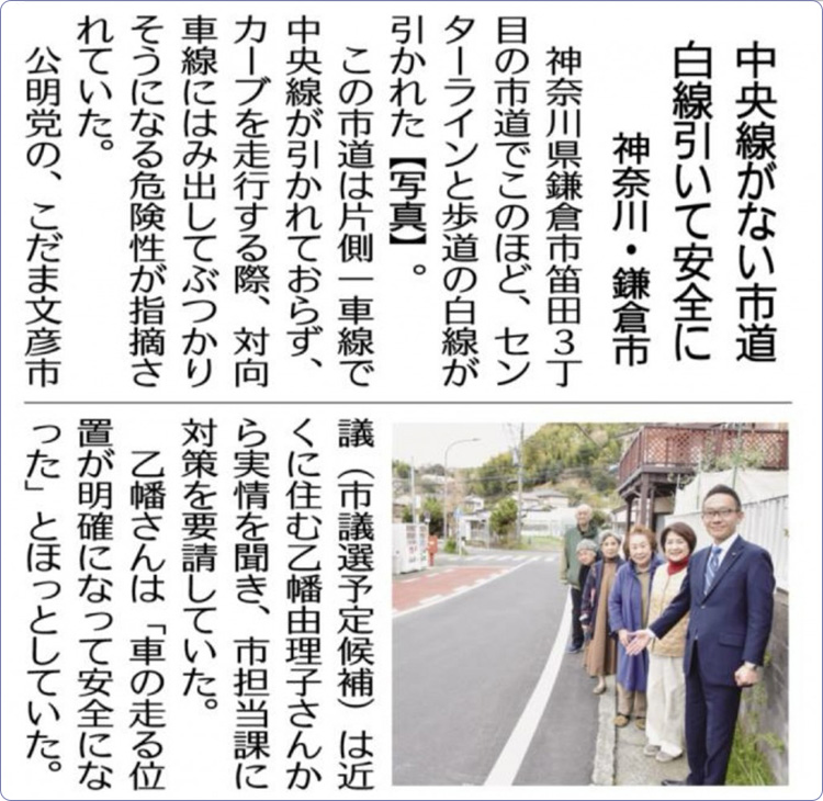 鎌倉市での道路の安全対策の記事が掲載されていました。