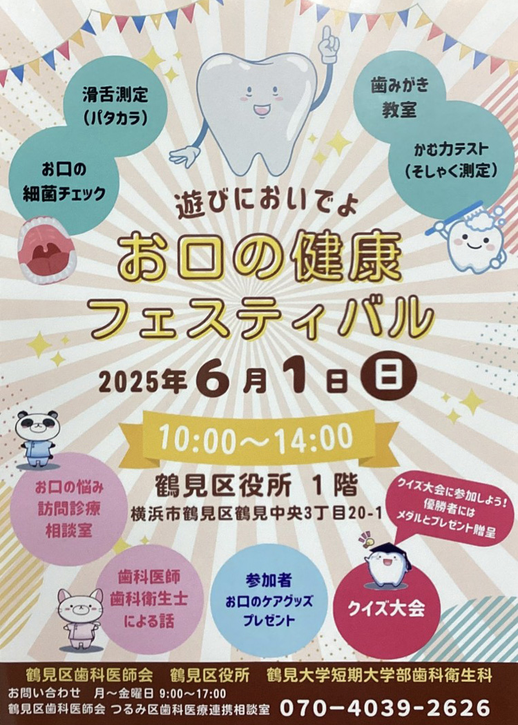 鶴見区では歯科医師会のご協力により「お口の健康フェスティバル」が開催されます。