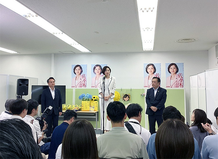 多くの皆様にご支援を頂き、3期目への挑戦をした佐々木さやか候補ですが、残念ながら惜敗となりました。厳しい選挙戦の中で、ここまで押し上げて頂いたことに対して、感謝の言葉が述べられました。