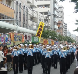 今日は晴天にも恵まれ(ちょっと暑かったですが・・・)、鶴見の各地での様々な催しにお邪魔をさせて頂きました。まずは生麦で行われました「蛇も蚊も祭り」。先週その準備を拝見させて頂きましたが、皆様のご尽力により、見事な3体の蛇が完成されておりました。ちょうどその出発に立ち会わせて頂きましたが、横浜市の無形民俗文化財である「蛇も蚊も」の継承にご尽力をされている保存会の皆様をはじめ、地域の関係者の皆様に改めて感謝の気持ちで一杯になりました。そしてその道中では、生麦南仲通り商栄会の前を通らせて頂き、「横浜”震災復興支援”150円商店街」の様子を拝見致し、初めて生でマグロの解体ショーを見ることができました。その後、つくの商店街でも開催しているとのことでお邪魔をし、防災コーナーで頑張っている皆さんへご挨拶をさせて頂きました。それから本町に移りまして、これも初めての経験ですが、本町パレードに参加をさせて頂きました。このような大規模なパレードとは知らず、これまでの関係者の皆様のご尽力に感謝申し上げたいと思いました。地域の皆様から「元気な鶴見を!」の息吹伝わる1日となりました。PS.私も学生時代マーチングバンドをやっておりまして、以前より噂に聞いておりました潮田中学マーチングバンドの皆さんのパレードを見ることができ、大変に感動致しました!