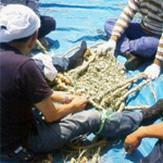 昨年に引き続き、横浜市無形民俗文化財にも指定されている蛇も蚊もの製作の様子を拝見させて頂きました。 |