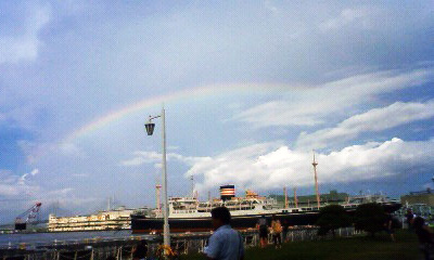 ちょうどその時に、氷川丸上空に虹が出ており、素晴らしい光景を目にすることが出来ました。