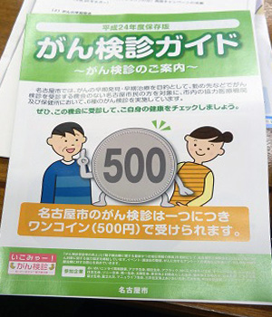 がんの早期発見のため、胃・大腸・肺・子宮・乳・前立腺における検診を500円で受診できるものです。