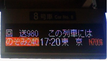 名古屋での視察を終え、横浜に戻るために新幹線のホームで時間待ちをしていたところ、乗車できない回送列車が入って来るとのアナウンスが。
