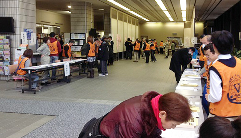 阪神淡路大震災から19年目を迎える今日、鶴見区役所にて鶴見区災害ボランティアネットワークならびに社会福祉協議会、各自治会関係者の皆様による、災害ボランティア受入訓練が行われました。