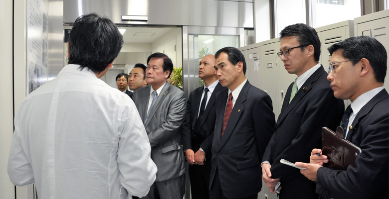 今日は横浜市大先端医科学研究センターを訪問し、そこで行われている研究内容や施設などを視察させて頂きました。