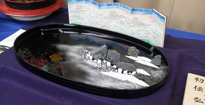 富士山と富士五湖を表現した作品や、今回初めて細川流盆石という、黒本の上に石を打って(置くこと)つくる作品など、興味深く拝見させて頂きました。