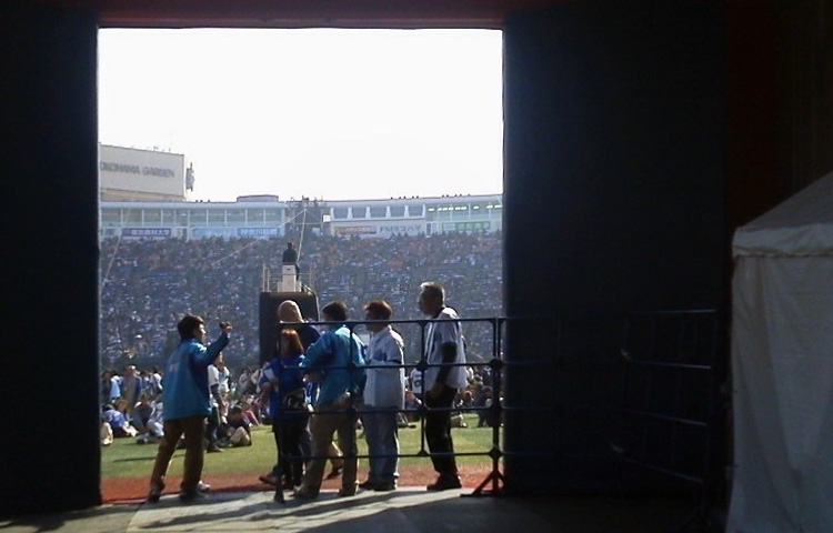 横浜スタジアムでは、ベイスターズのファンフェスティバルが開催されており、朝からたくさんのファンが集っています。