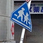 朝一番で交通標識の現場調査に伺いました。大切な標識が大きく折れ曲がっています。