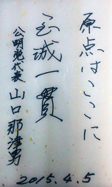 原点 2015年4月6日 昨日は公明党の山口那津男代表が鶴見区に来て下さいました。 その前に選挙事務所(60年前から選挙事務所に使わせて頂いている伝統の事務所)にも立ち寄ってくださいました。 新たな原点を築いて頂き、感謝申し上げます。