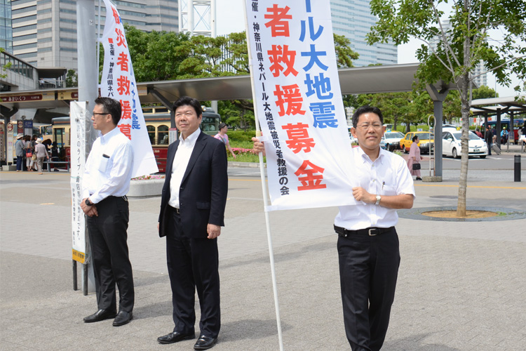 被災者救援募金 2015年5月23日 今日は「神奈川県ネパール大地震被災者救援の会」主催による被災者救援募金に参加させて頂きました。 4年前の東日本大震災と違い、メディアので報道等々も少なく感じますが、多くの方々からのご協力を頂きました。 引き続き、何かできるかを考え、支援につなげて参ります。