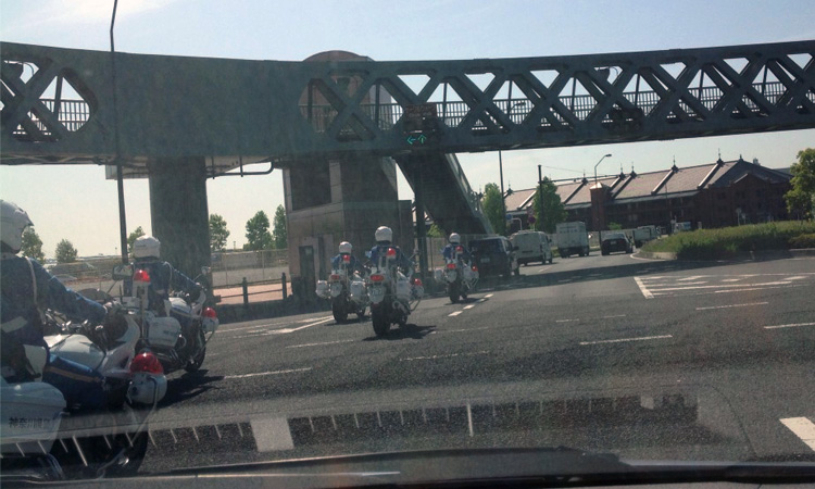 白バイ隊 2015年5月11日 今朝、市会に向かう際、後方から赤色灯をつけた白バイ隊が追って来ました。 何事かと思い、スピードをセーブしながら走っておりましたが、赤レンガ倉庫前に交通機動隊が集結しており、そこへの合流と分かりました。 白バイも赤色灯をまわしながら、何台も一緒に走ってくると、さすがに迫力があります。