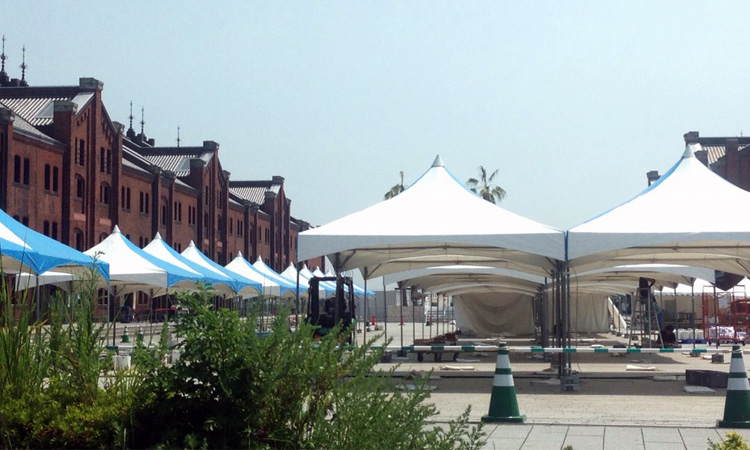 西海岸登場 2015年7月31日 今日から8月30日まで、横浜の赤レンガ倉庫前にアメリカ西海岸が現れます。 3つのエリアを構成して西海岸を演出するもので、入場は無料とのことです。 準備の方も最後の追い込みと言った感じです。ぜひ足を運んで頂ければと思います。