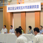 今日は横浜市にて、五大市(名古屋、神戸、大阪、京都、横浜)の公明党の市会議員が集って、大都市が直面している課題についての政策研究会が開催されています。
