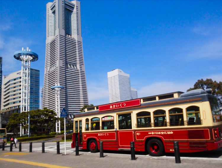 横浜市交通局では、桜木町駅からベイサイドエリアをめぐりながら、港の見える丘公園まで毎日運行している「あかいくつ」を走らせています。