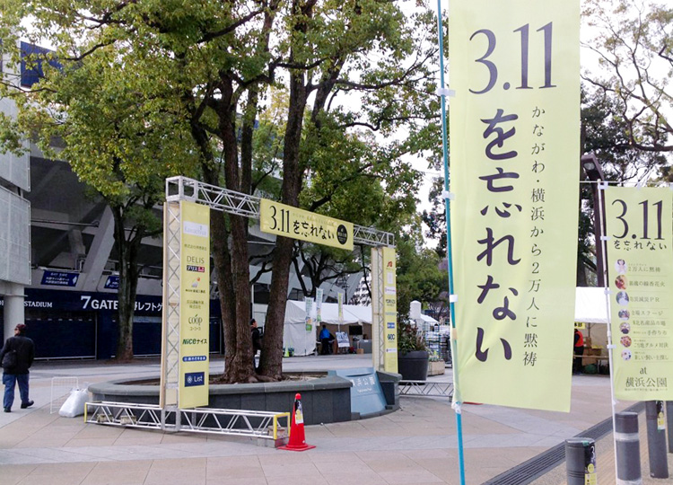 今日と明日の両日、横浜公園(横浜スタジアム)にて「3.11を忘れない」イベントが開催されています。