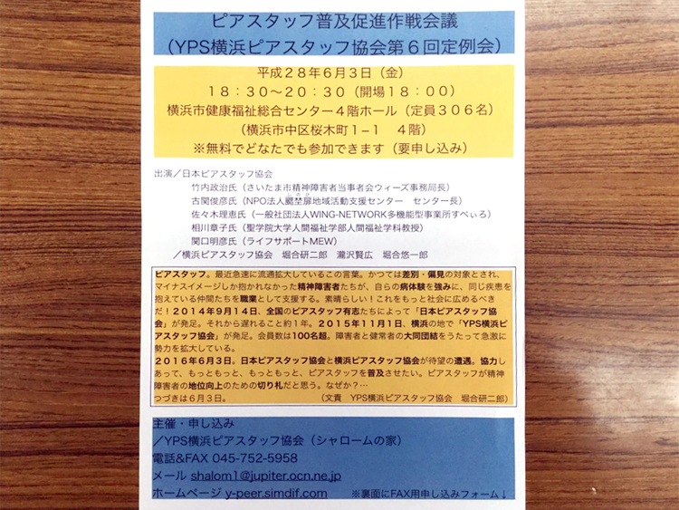 今日の総会では「ピアスタッフ」という言葉を初めてお聞きしました。