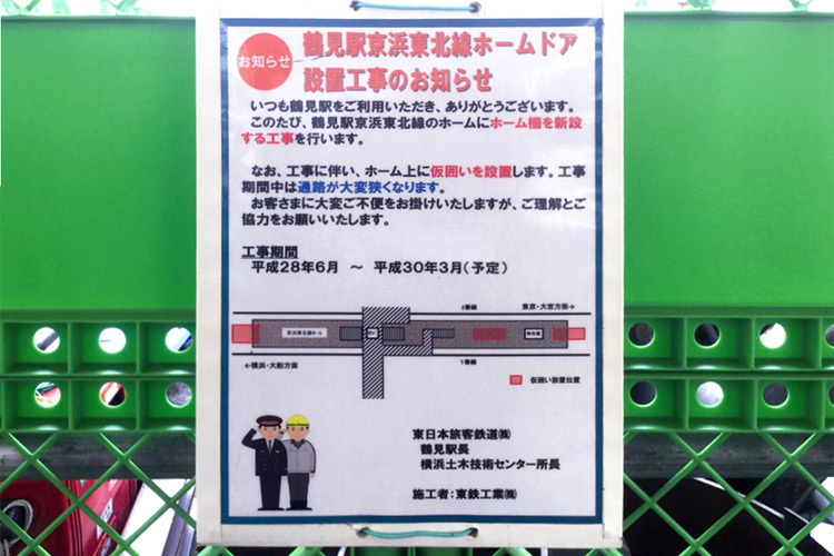 公明党の国・県・市のネットワークと、JR東日本並びに関係当局のご協力により実現した鶴見駅京浜東北線ホームへのホームドア設置工事がスタートしています。