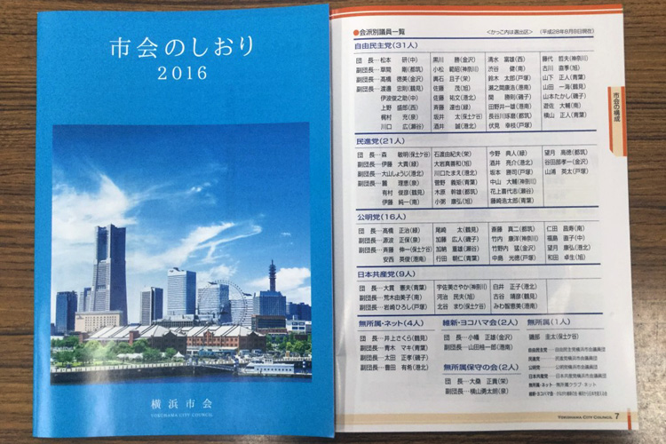 本日、「市会のしおり2016」が届きました。