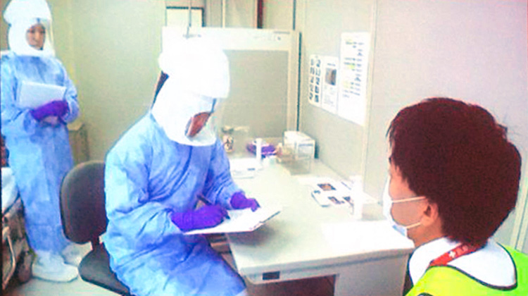 今日は横浜労災病院で実施されている新型インフルエンザ等へ対応するためのシュミレーション訓練を視察しています。
