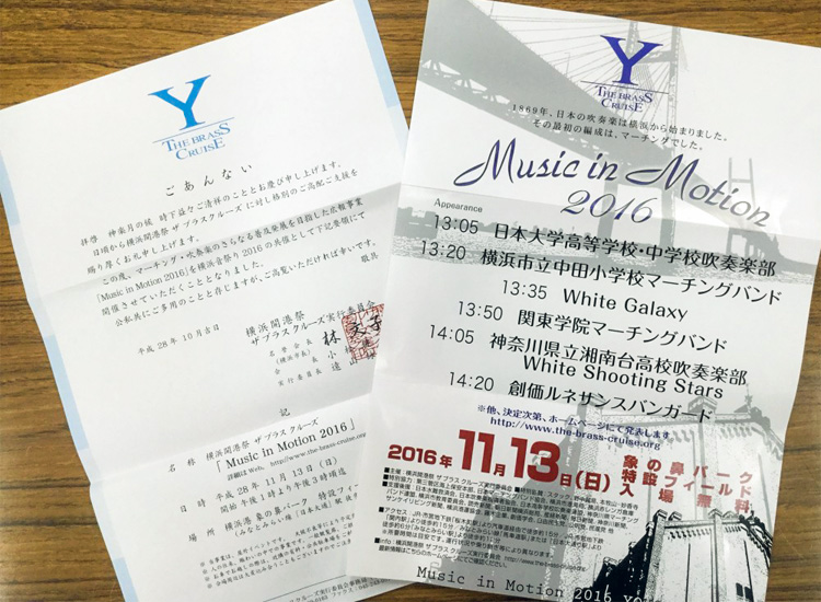 横浜音祭りのプログラムの一つでもあり、全国トップレベルのマーチングバンドの演奏に高い期待が寄せられています。