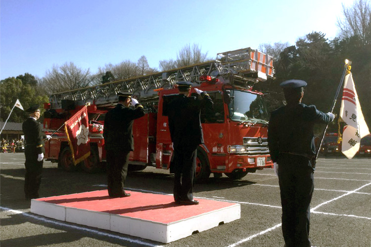 また昨年のマーチングバンド全国大会で金賞を受賞した、潮田中学校マーチングバンド部の演奏も披露され、出初式に華を添えて頂いています。