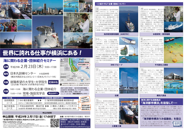 横浜は海洋都市の一つですが、海に関わる仕事を目指す学生さんへのセミナーなども開催されています。