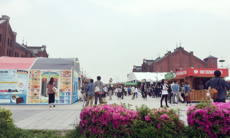 5月も地元廻りからはじまり、市庁舎へ向かう途中の赤レンガ倉庫前ではヨコハマフリューリングスフェスト2017が開催されていました。