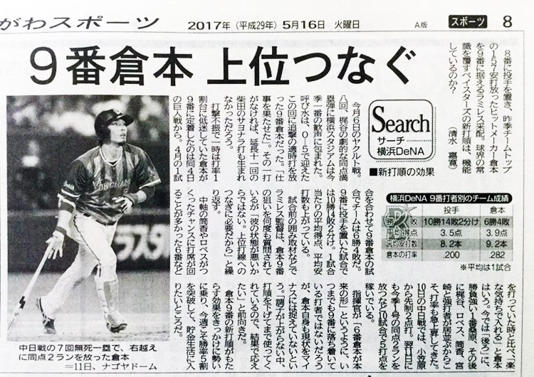 今日の神奈川新聞で横浜DeNAベイスターズの、恐るべし「9番倉本」選手が特集されています。