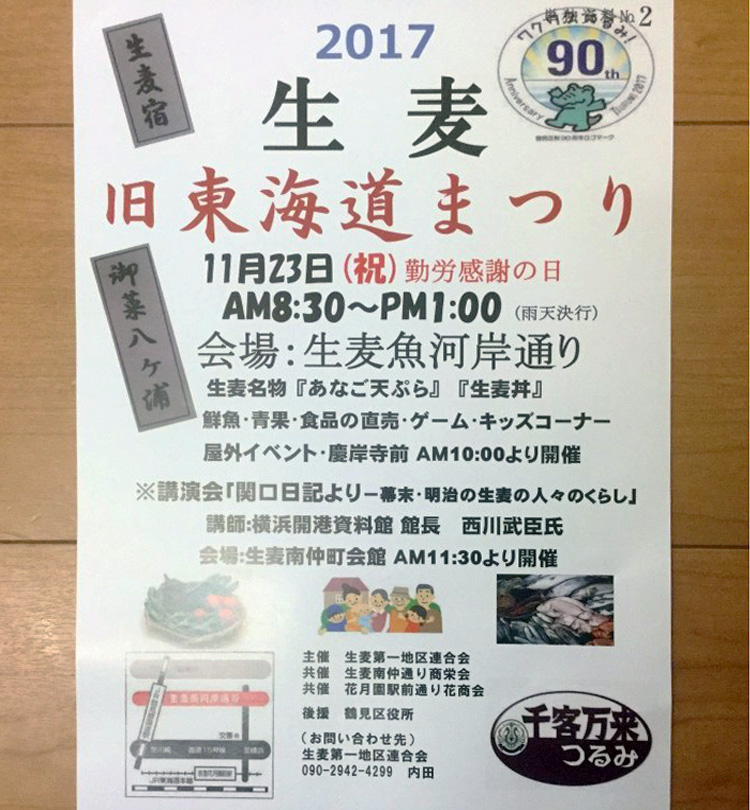 来月11月23日には、鶴見区の恒例行事となりました「2017生麦旧東海道まつり」が開催されます。