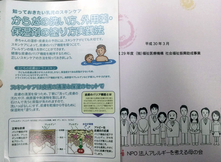 横浜市では乳幼児からスキンケアを行うことで、アトピー性皮膚炎の発症を3割以上減らせるとのから、スキンケアのパンフレットを作成し、健診や赤ちゃん訪問で活用されています。