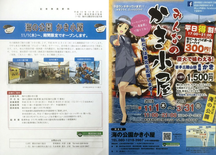 11月1日から来年の3月末までの予定で、金沢区にある海の公園では「かき小屋」がオープンします。