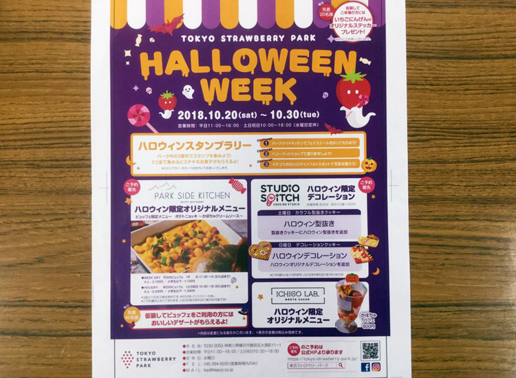 鶴見区にある「東京ストロベリーパーク」でも10月20日から10月30日まで、ハロウィンイベントが開催されます。