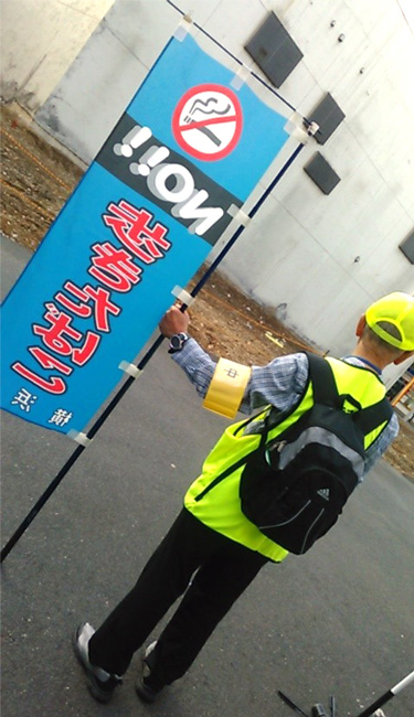 鶴見区内にある駅周辺では、喫煙マナー対策としての啓発活動が行なわれており、今朝も生麦駅では2名の担当者が従事しておられました。