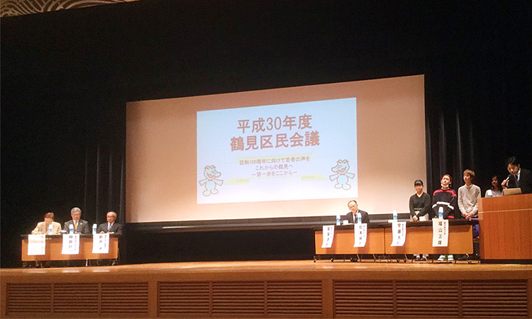 鶴見区では40年以上に渡り区民会議が実施されていますが、本日は初めて夜の時間帯を使って、「区制100周年に向けて、若者の声をこれからの鶴見へ〜第一歩をここから〜」をテーマに開催されています。