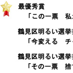 鶴見区では、政治・選挙に関心をもってもらうきっかけづくりの一つとして、区内市立小中学生を対象に標語コンクールを実施しています。