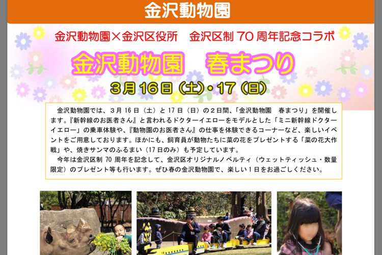 3月16日、17日の両日にわたり、「金沢動物園 春まつり」が開催されます。