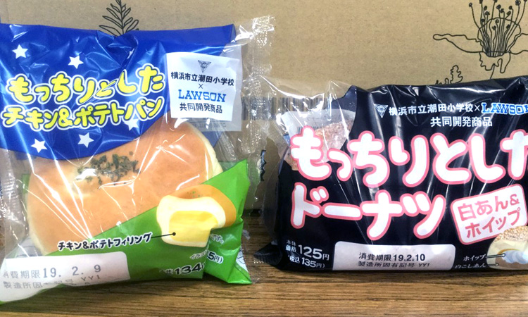 昨日、市庁舎内のコンビニで、鶴見区の潮田小学校の児童がローソンと共同開発したパンが販売されていました。