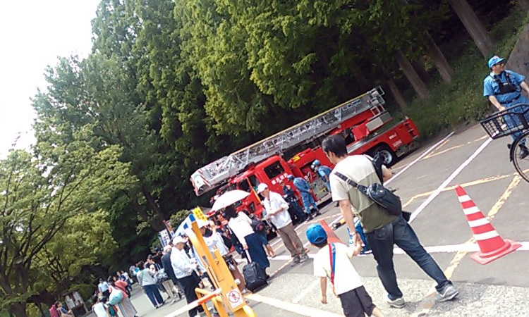 ステージパフォーマンスや模擬店、フリーマーケットなど、多くの方々で賑わっていました。消防自動車のはしご車搭乗体験は毎回人気イベントの一つです。