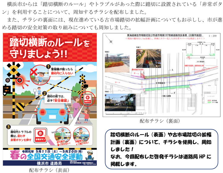 先日は古市場踏切で「踏切事故防止 啓発活動」が行われました。