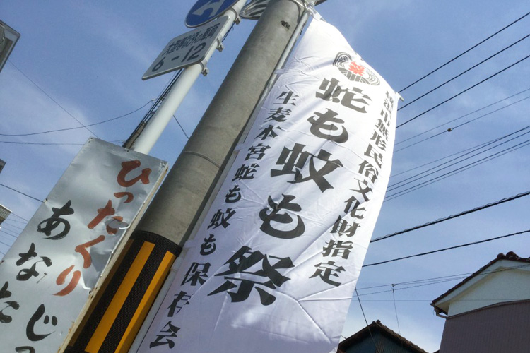 鶴見区で横浜市無形民族文化財に指定されている「蛇も蚊も祭」の開催を来週に控え、朝から保存会の方々が蛇の製作に取り組んでおられます。 カヤ集めから始まり、3週間以上をかけて準備されています。