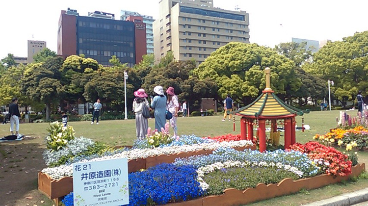 よこはまパレードの前には、山下公園で開催されていた花壇の展示会に立ち寄りました。