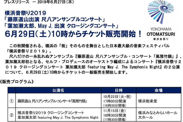 本年は「横浜音祭り2019」が開催されますが、その内の『横浜音祭り2019 クロージングコンサート』のチケットが、6月29日より一般販売されます。