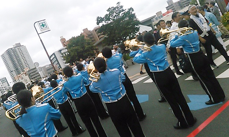 マーチングバンド全国大会において、2年連続で日本一の栄冠に輝いた、潮田中学校マーチングバンド部の演奏によるパレードでしたが、まさに最高に贅沢な瞬間です。