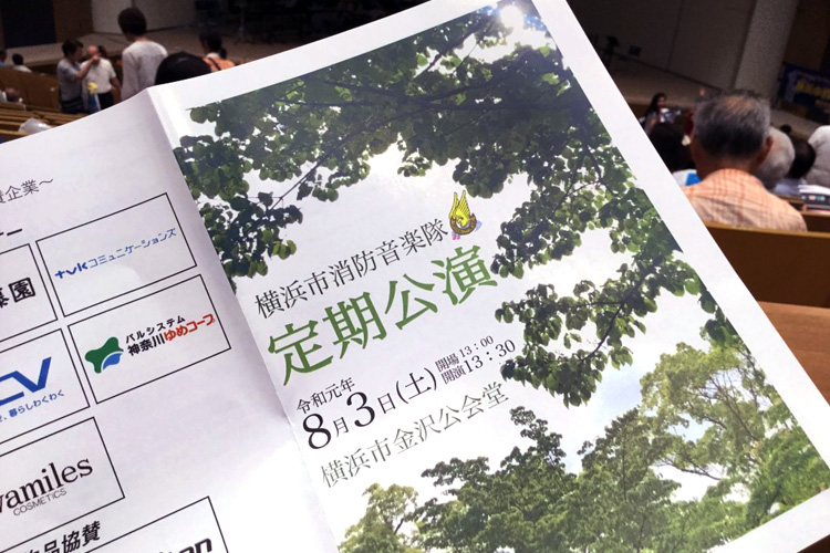 今日は金沢公会堂で開催されている、横浜市消防音楽隊の定期公演に伺っています。猛暑にもかかわらず、多くの方々がお越しになっています。